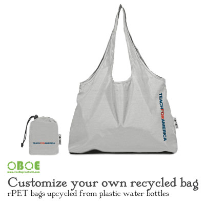 thier own eco-friendly bags made from rPET fabrics (that are made from water bottles!)